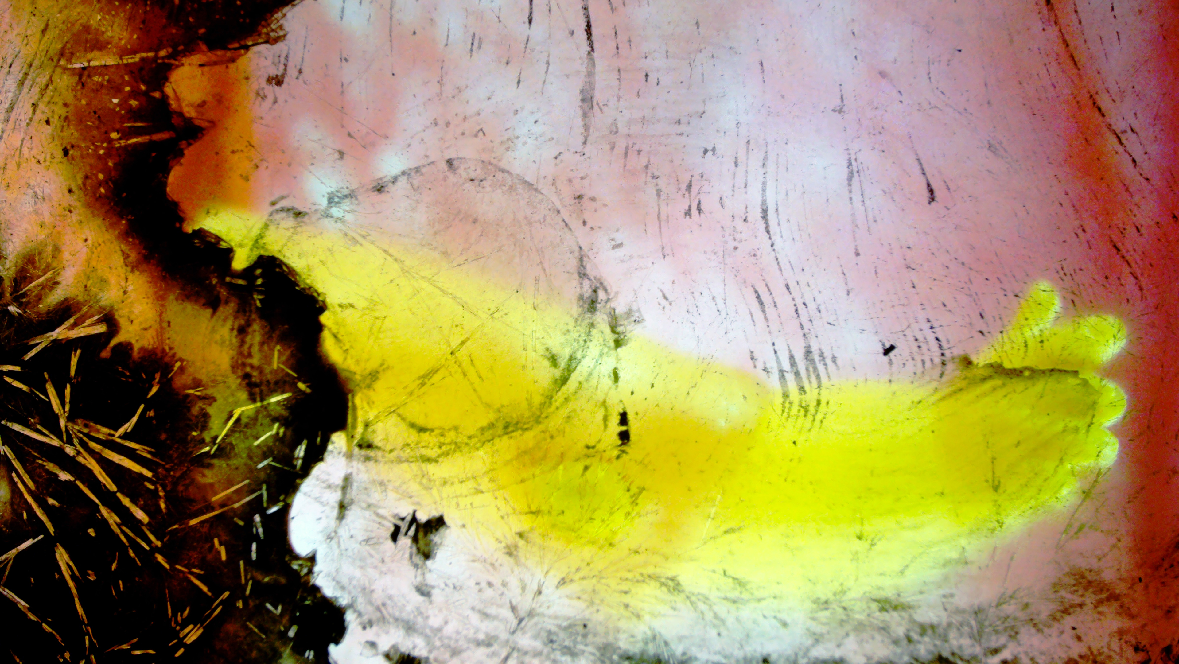 Interlude (A Pause Between Acts) is a handmade, cameraless film (still in progress) quietly excavating maternal experience reframed through the embodied lens of perimenopause. Using salt-crystallised, burned, and water-damaged 35mm motion picture celluloid as skin and scar, I explore decay, corrosion, and distortion as metaphors for the subtle bodily and emotional shifts occurring at this introspective moment in my life. Perimenopause is not exclusively maternal; yet, for me, its transformative unease, this faltering trust in body and mind, offers new ways to reconsider motherhood: past, present and still arriving. Fragmented 35mm archival slides and negatives of myself and my five sons as infants surface softly from textures of salt, water, and flame - blurring, flickering, slipping into shadow. Some dissolve too quickly to hold. Others stay too long. A few bleed into each other. One fails to appear at all. Many carry the unease of raising sons in systems that weaponise tenderness, where care bruises and masculinity becomes mask and mirror. Textual fragments whisper of missteps, detours, and loops: gestures of maternal spirals. Silence breathes uncomfortably. Haunted by quiet dissonance, fault lines buckle, and memories unravel awkwardly beneath skin. Perhaps this is grief. Perhaps it’s relief. Perhaps both. There are no clean lines here; only a quiet alchemy stirring beneath the surface, unseen, folding inward, reshaping from within. And still, we carry on unmended, unwinding, and yet, fundamentally here.